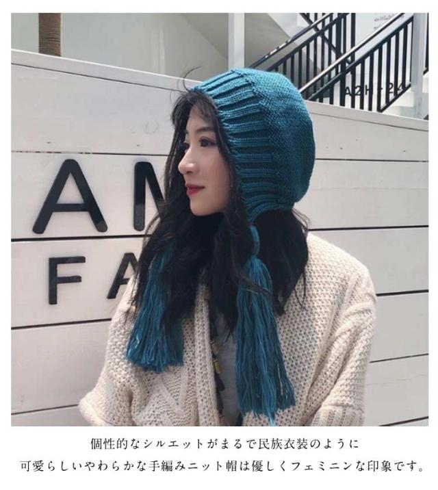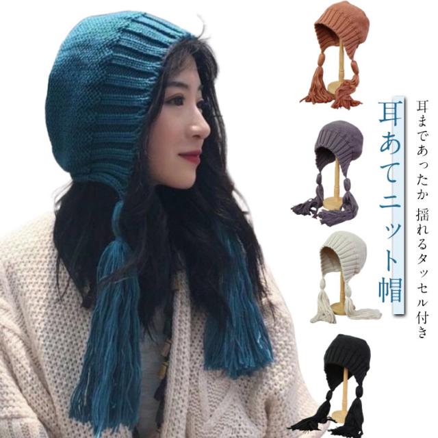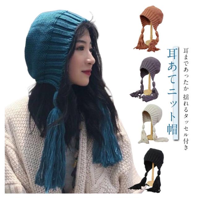 フード ニット帽 レディース 揺れるタッセル 耳あて付き 帽子 民族風 バブーシュカ 秋冬 あったかフード帽 防寒 耳あて ニット バラクラバ お洒落 アウトドア 雪 可愛い プレゼント