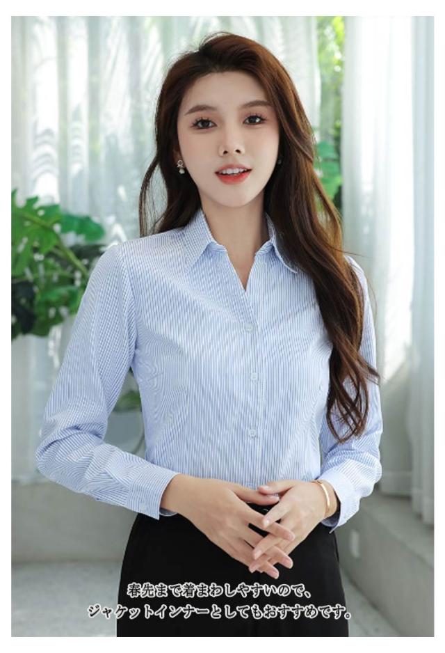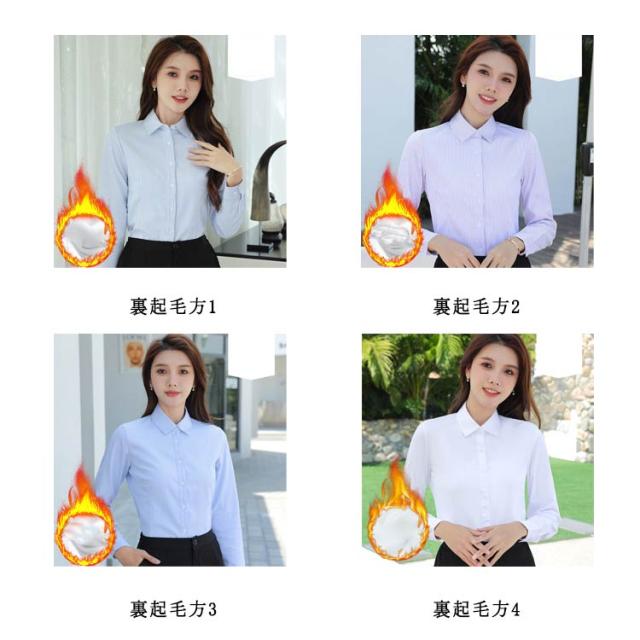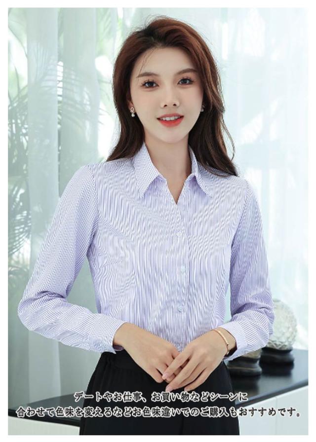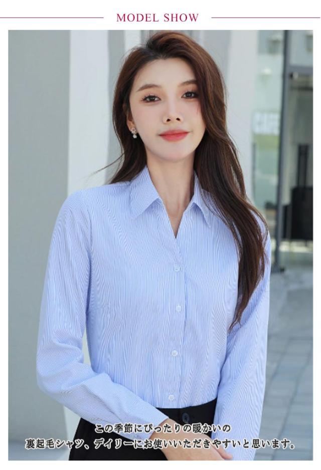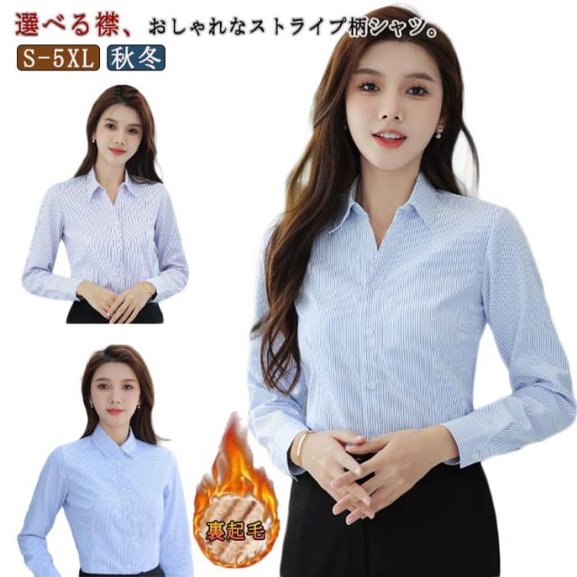 事務服 通勤 大きいサイズ シャツ 冬 スリム シンプル OL Yシャツ 裏起毛シャツ 長袖シャツ シャツブラウス ストライプ あったか 暖かい 秋冬 秋 ストライプ レディース フォーマル S M L XL 2XL 3XL 4XL 5XL