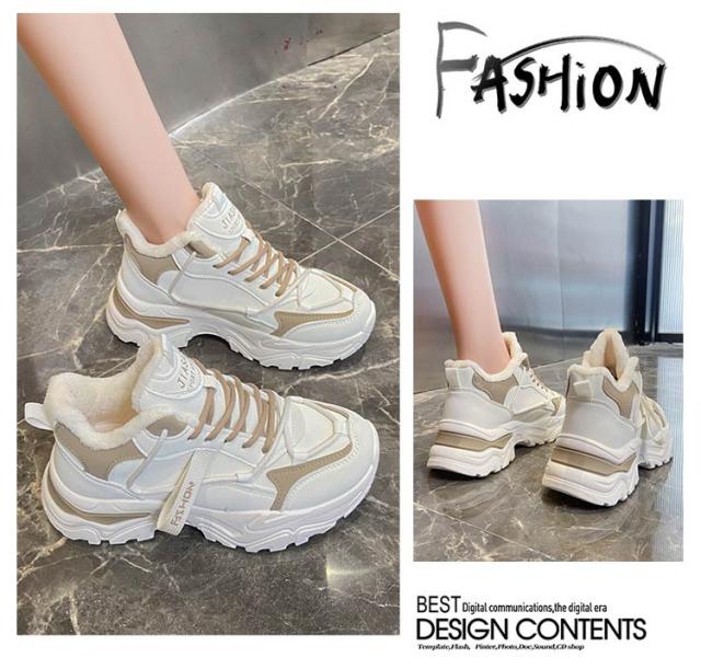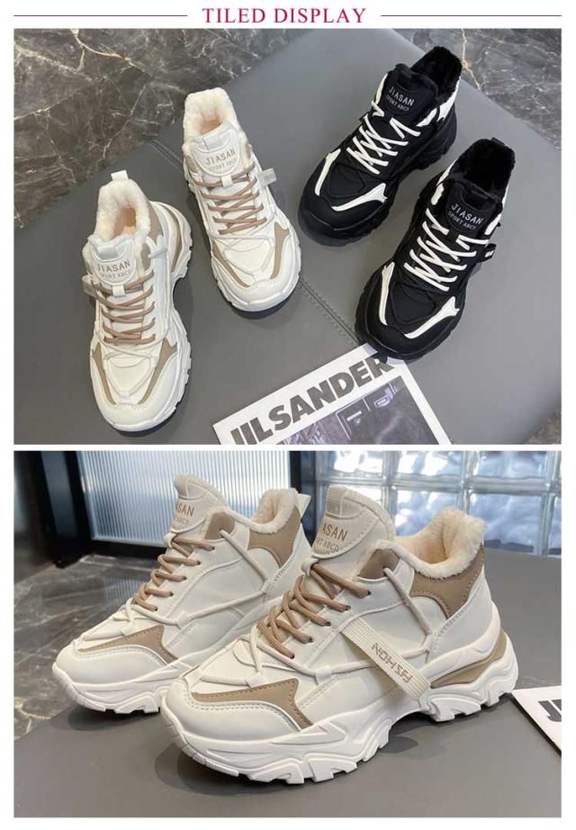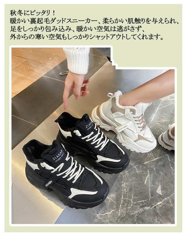 | おしゃれな韓国ファッション! 秋冬にピッタリ!暖かい裏起毛ダッドスニーカー、柔らかい肌触りを与えられ、足をしっかり包み込み、暖かい空気は逃がさず、外からの寒い空気もしっかりシャットアウトしてくれます。 厚底デザインで、さり気なく身長アップ、美脚効果を実現、女性綺麗な姿を示します。 | |