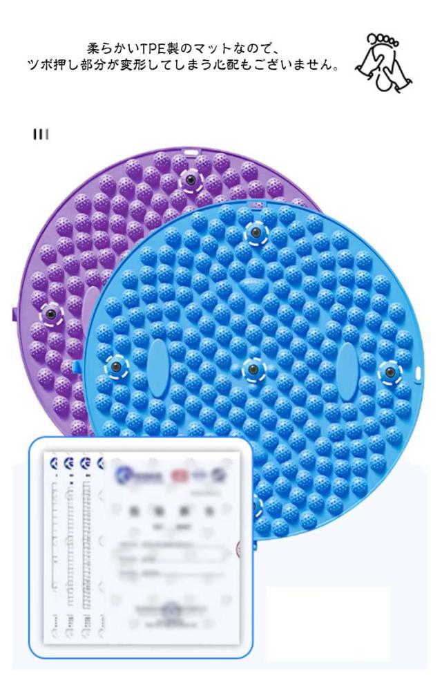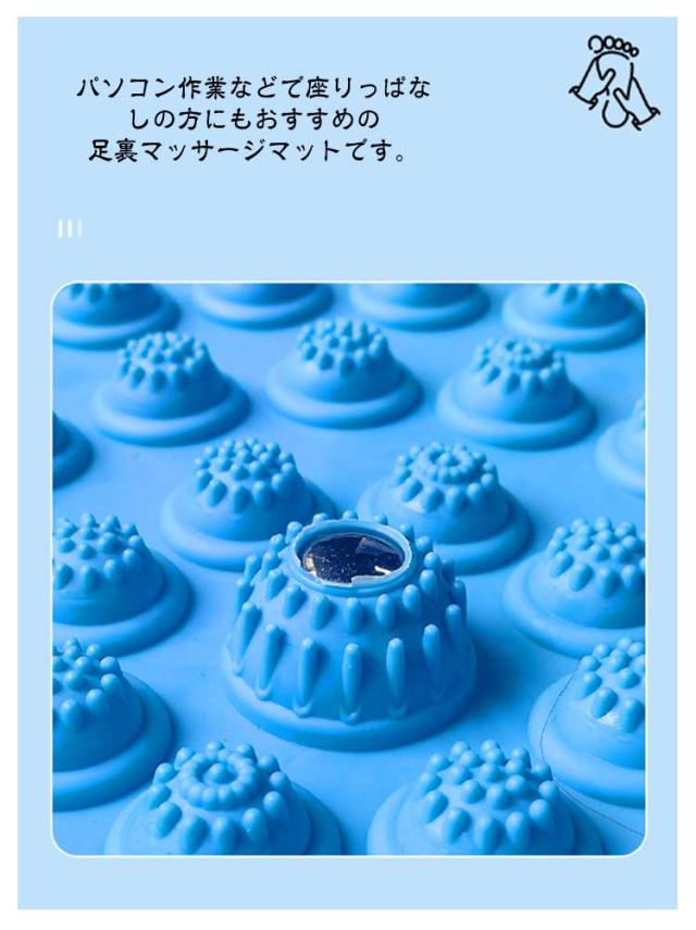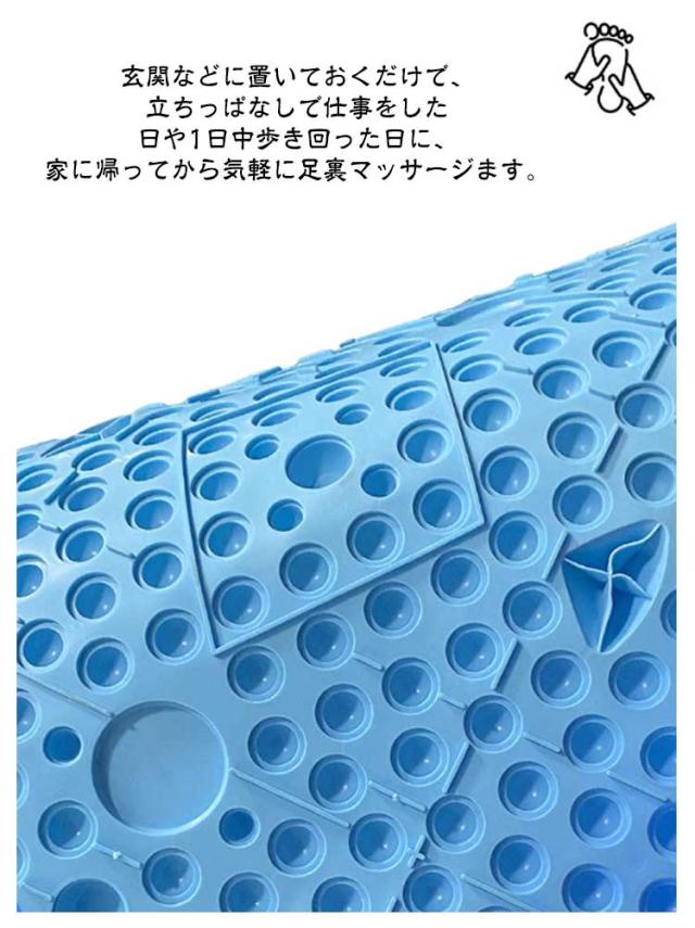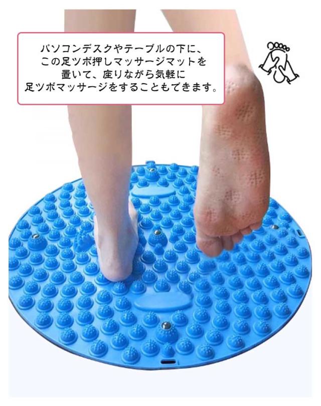 | 健康は足の裏から!日々の疲れを癒す足ツボマットです。 踏むだけで足の裏の反射区を刺激することで、新陳代謝と血液循環を促進します。 柔らかいTPE製のマットなので、ツボ押し部分が変形してしまう心配もございません。 玄関などに置いておくだけで、立ちっぱなしで仕事をした日や1日中歩き回った日に、家に帰ってから気軽に足裏マッサージます。 パソコンデスクやテーブルの下に、この足ツボ押しマッサージマットを置いて、座りながら気軽に足ツボマッサージをすることもできます。 パソコン作業などで座りっぱなしの方にもおすすめの足裏マッサージマットです。 汚れが付着しにくいマットで、もし汚れが付いてしまっても、簡単に水洗いで落とすことができます。 | |