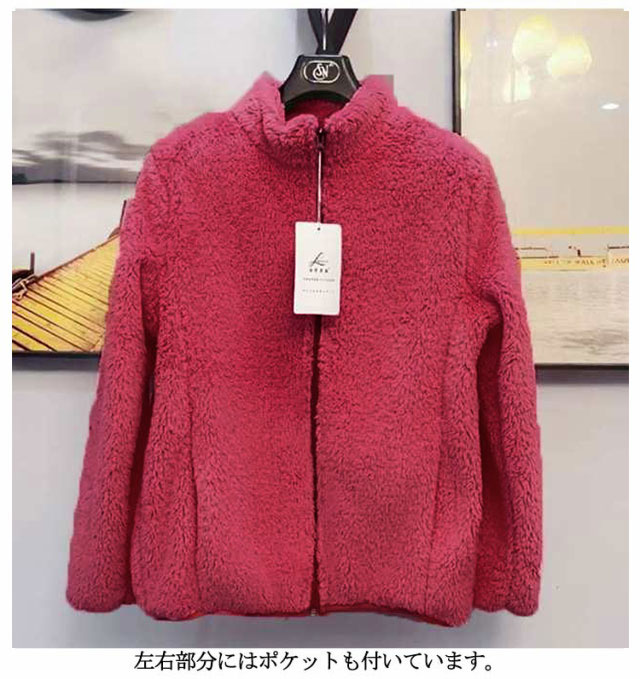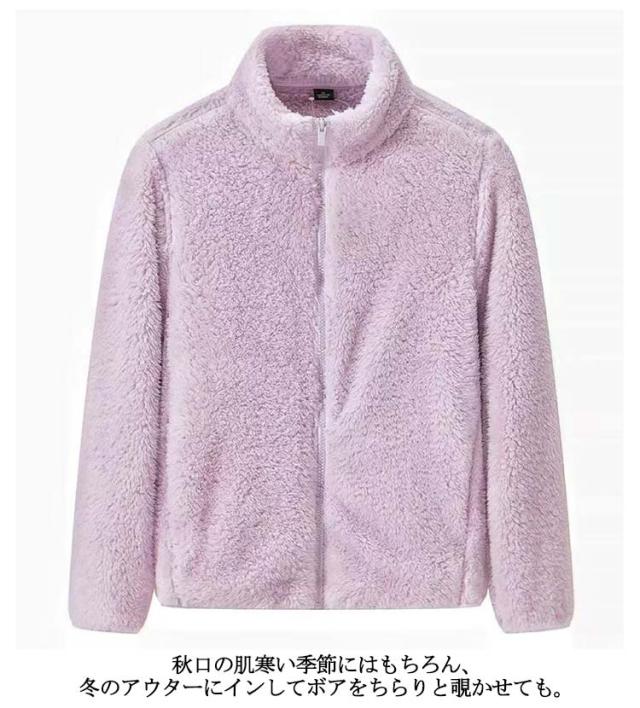 ボアジャケット レディース フリース ボア ジャケット コート もこもこ 秋冬 前開き アウター フリースャケット ボアジャケット 長袖 厚手 スタンドカラー 立ち襟 起毛 ルームウェア パジャマ 毛布 部屋着 防寒着 アウトドア 送料無料