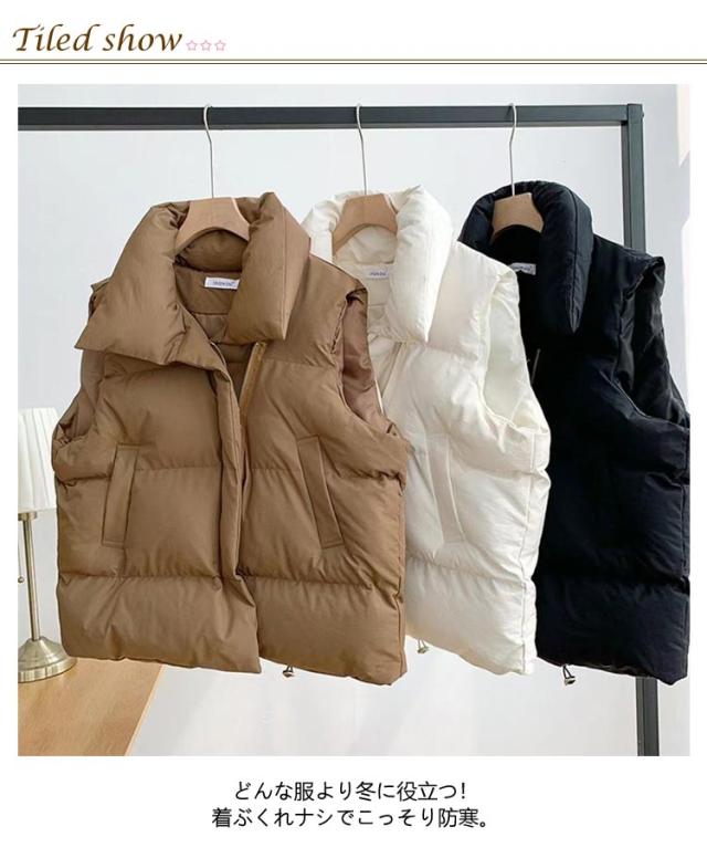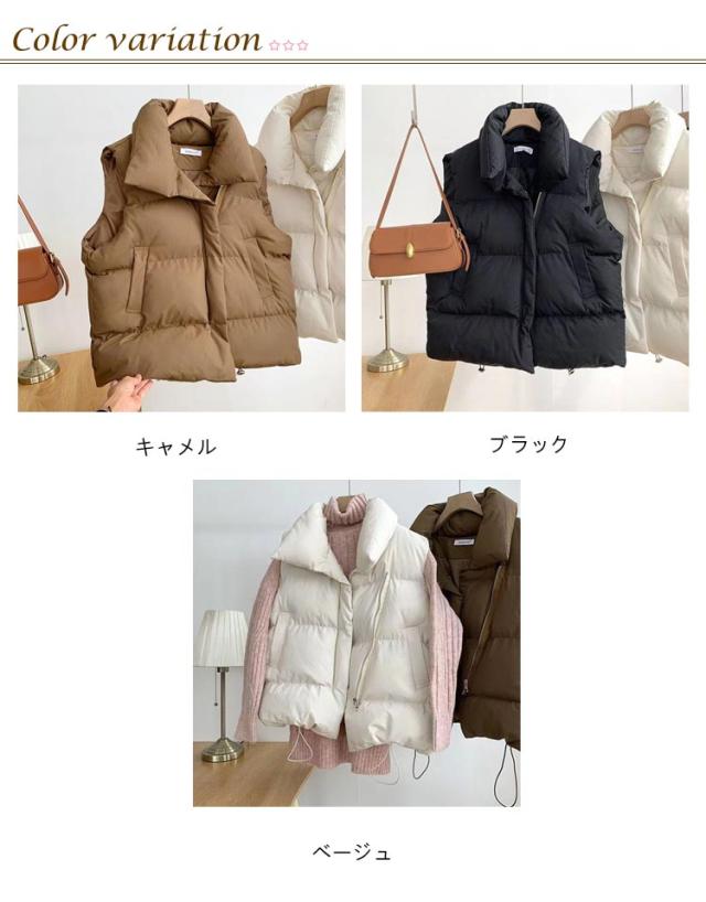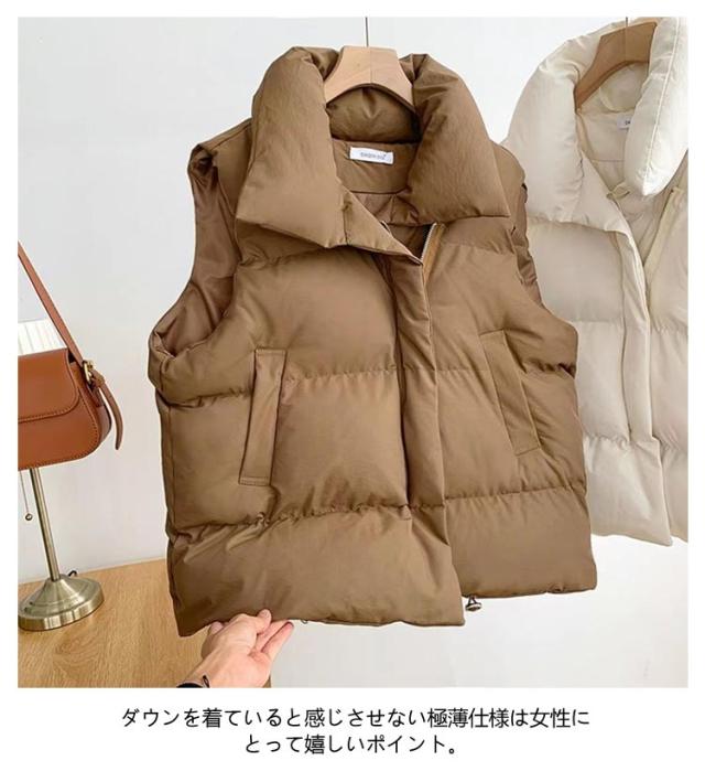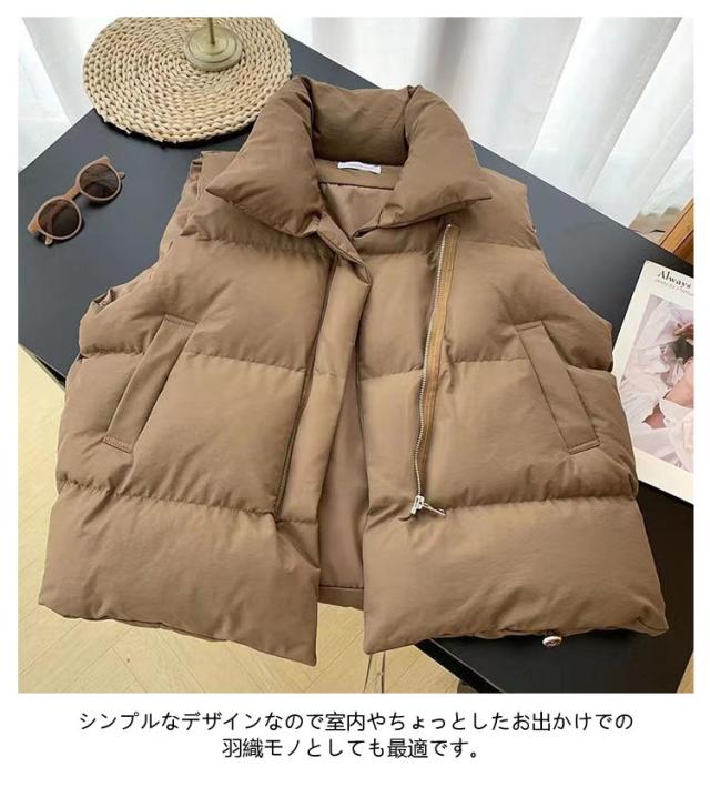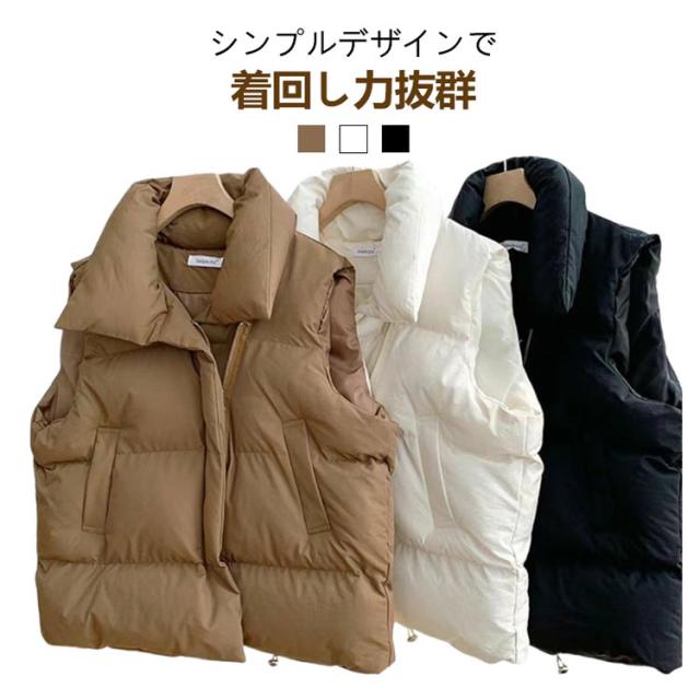 ダウンベスト レディース 中綿ベスト ライトアウター 前開き 秋冬 キルティング トップス 中綿 ジャケット 羽織り 厚手 防寒 量軽 ノースリーブ ポケット付き 通勤 通学 韓国風 ふわふわ カジュアル