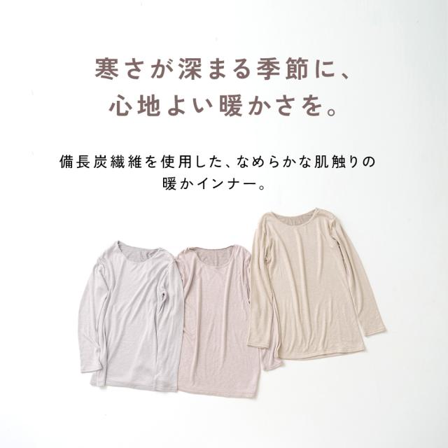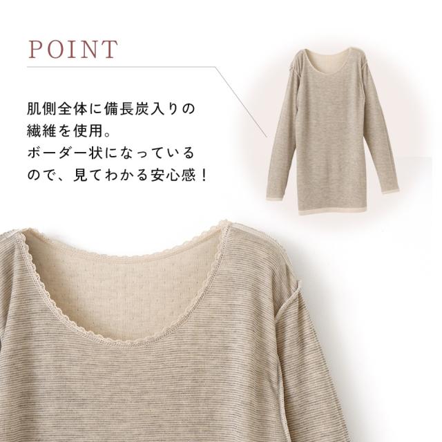 日本製 紀州備長炭 袋編み 保湿 表微起毛 8分袖 遠赤外線 発熱素材 インナー 秋冬 レディース 婦人 女性 下着 肌着