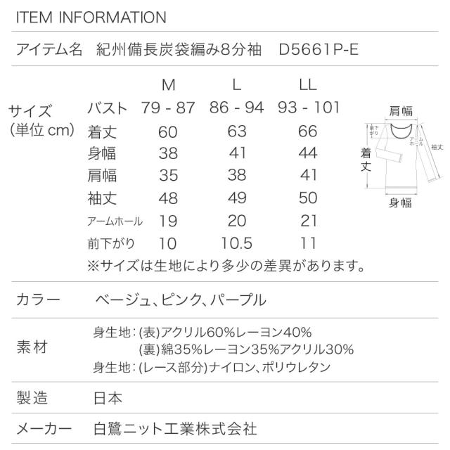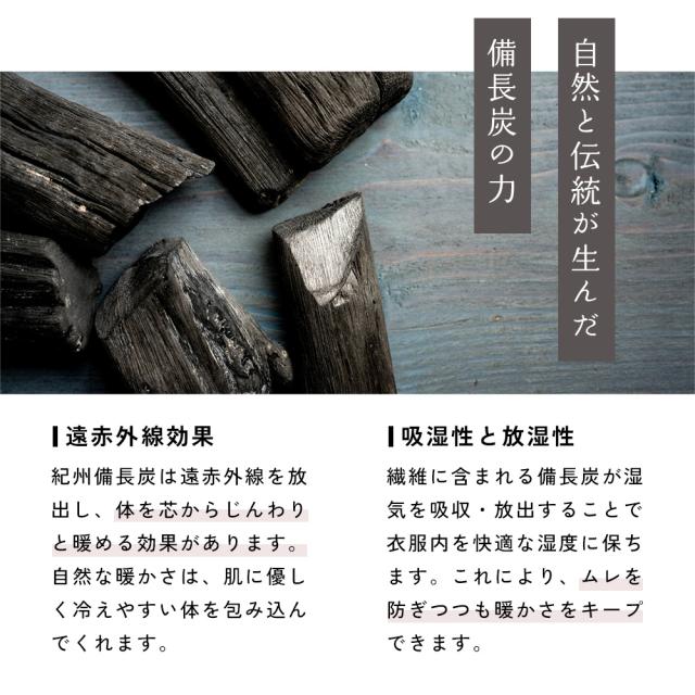日本製 紀州備長炭 袋編み 保湿 8分袖