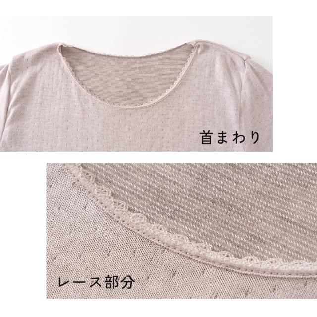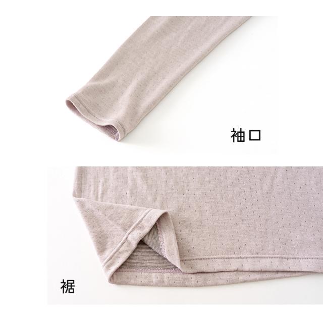 日本製 紀州備長炭 袋編み 保湿 表微起毛 8分袖 遠赤外線 発熱素材 インナー 秋冬 レディース 婦人 女性 下着 肌着 24AW D5661P-E