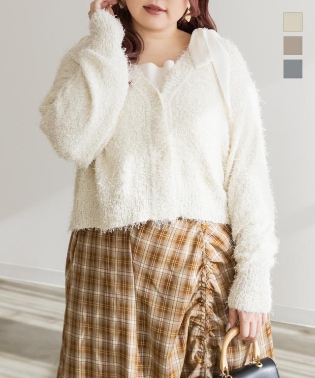 大きいサイズ/レディース/LL/3L/4L/CLETTEオリジナル★Vネックシャギーカーディガン