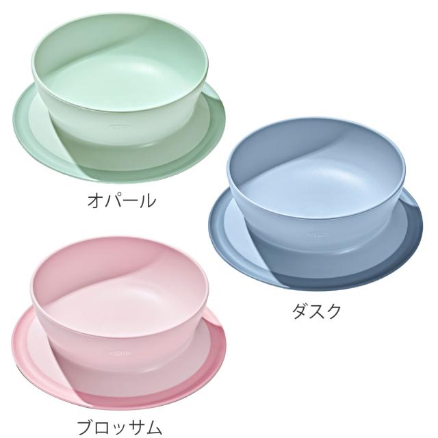 ●底面についた吸盤がテーブルやトレイに密着して、ズレずに食事ができるボウルです。