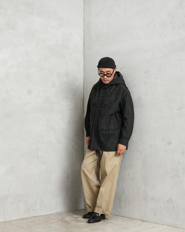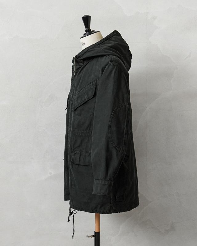 | 商品説明 | 実物 USED ベルギー軍 M-64 AIR FORCE フーデッド フィールドジャケット DARK GREEN染めのご紹介です。 1964年にベルギー空軍で採用されたフィールドパーカーです。 元々オリーブだった物を染め職人に丁寧にDARK GREEN染めを施していただきました。室内ではブラックに近いカラーに見えますが、屋外でしたらブラックとはまた違うダークグリーンの魅力的なカラーに仕上がっています。 フード一体型でミドル丈のジャケットなので、モッズコートの感覚で着ていただけます!ベルクロとボタンで開閉する比翼仕立てのフロントに、フードにはドローコードとチンストラップ付きで、フード先端と中段あたりにベルクロ付きで調節可能な仕様になっています。 ウエストや裾にはドローコードも付属していますので、シルエット調節も可能です。袖の肘部分はエルボーパッチで補強されており、脇下は蒸れにくいベンチレーションになっています。背面裾には股の間を通して前面で固定できる古い年代のアイテムならではのディテールであるストラップが収納されています。 この年代ならではの厚みのあるコットン、ポリエステル混紡生地で、USEDならではのアタリと染めの相性も良く、クールな雰囲気が感じられます。胸にはペンホルダー付きのスラントポケット、ウエストのサイドポケットと、バックサイドには背中の中心で分割されたゲームポットも付属していますので収納力も抜群です。 中々見つからなくなってきています!いずれ価格の高騰が起きてもおかしくないと思う良いアイテムです。 | ||||||||||||||||||||||||||||||||||||||||||||||||||||||||||||||||||||||||||||||||||||||||||