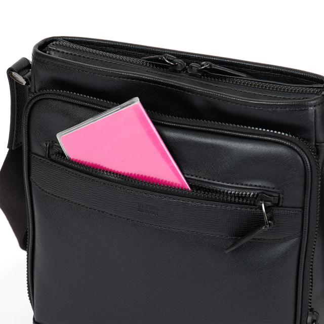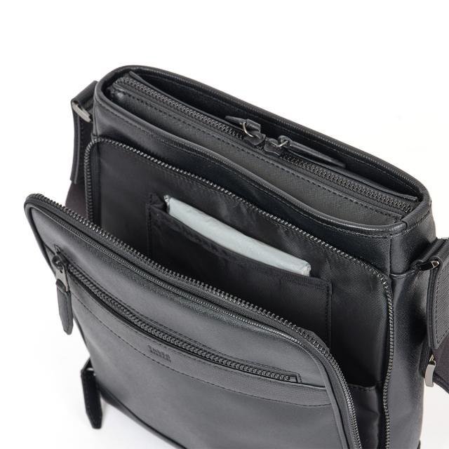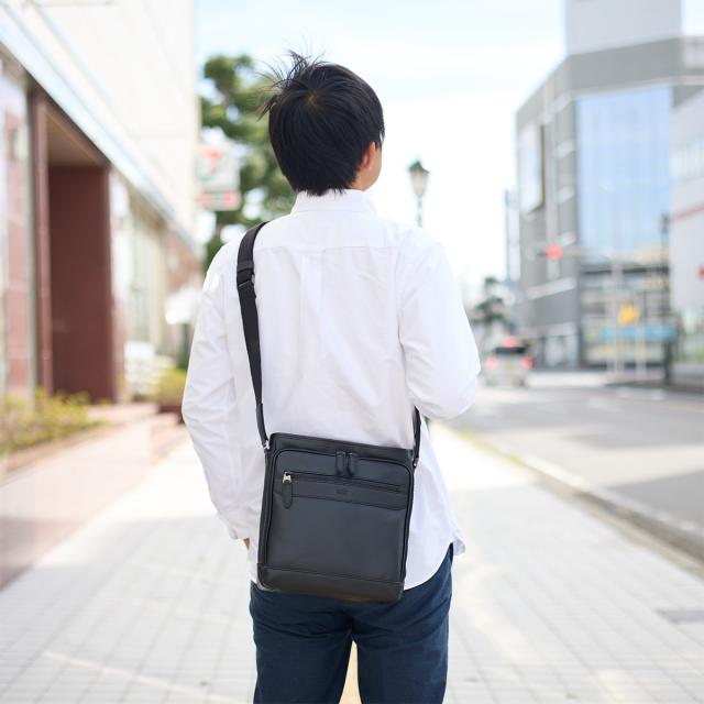 きれいめスタイルを完成させてくれる、ON/OFF兼用で使えるTAKEO KIKUCHIのB5サイズのショルダーバッグです。B5サイズのノートや500mlのペットボトルがすっぽりと入るサイズ感になっているので、タウンからトラベル、仕事までと幅広いシーンでお使いいただけます。