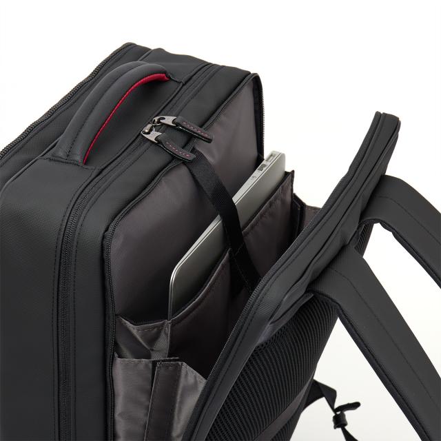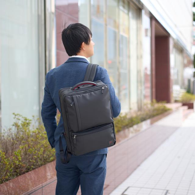 収納機能抜群で、普段の通勤から短期出張まで幅広く使えるビジネスリュックです。