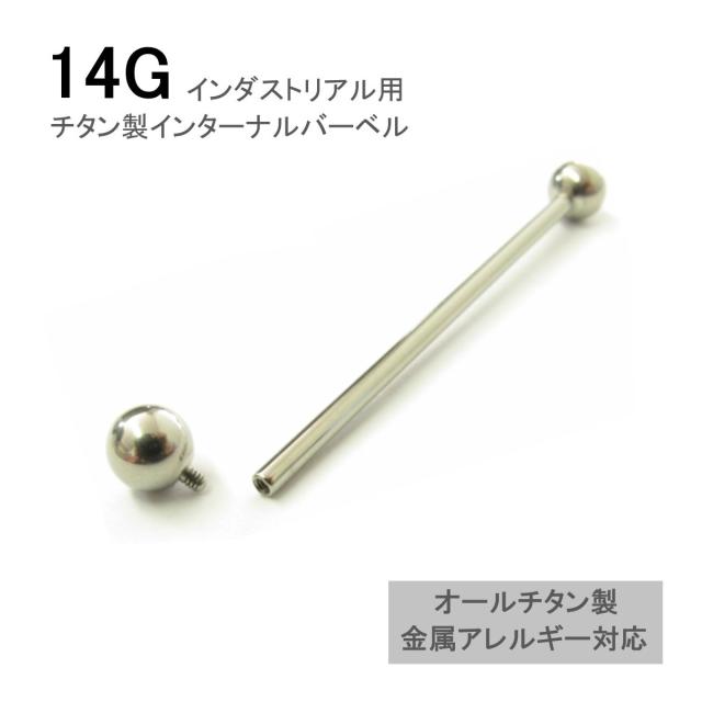 チタン インダストリアル 14G 金属アレルギー対応 ファーストピアス オールチタン インターナルロングバーベル メンズ レディース ユニセックス 32mm 35mm 38mm 選べるボールサイズ シルバー つけっぱなし ボディピアス 軟骨ピアス 耳ピアス インダス