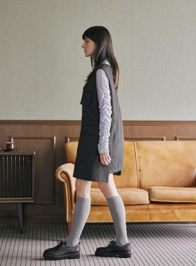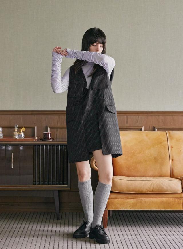 シンプルなシルエットで、トップスとしてはもちろん、ジャケットのインナーやジャンパースカートとのレイヤードにもオススメな着回しの効く1枚です。