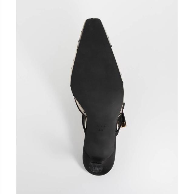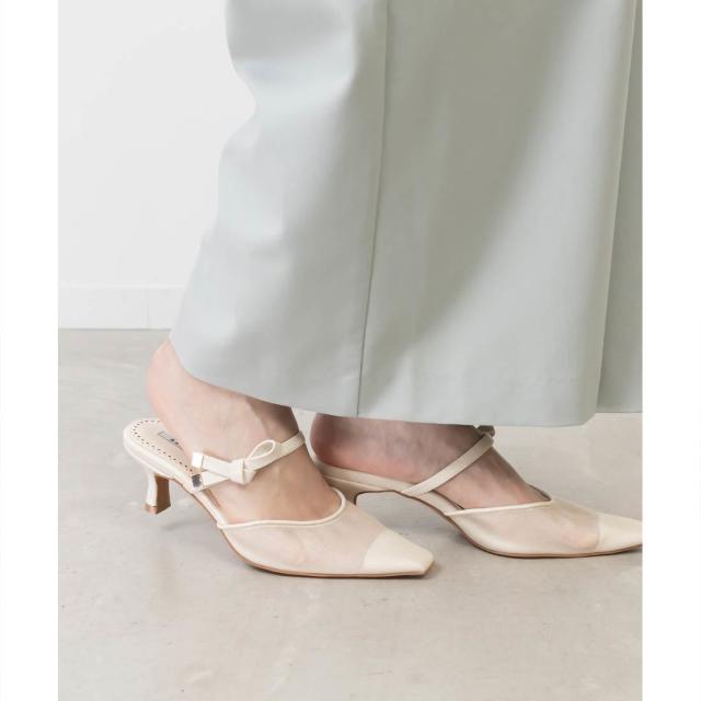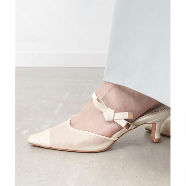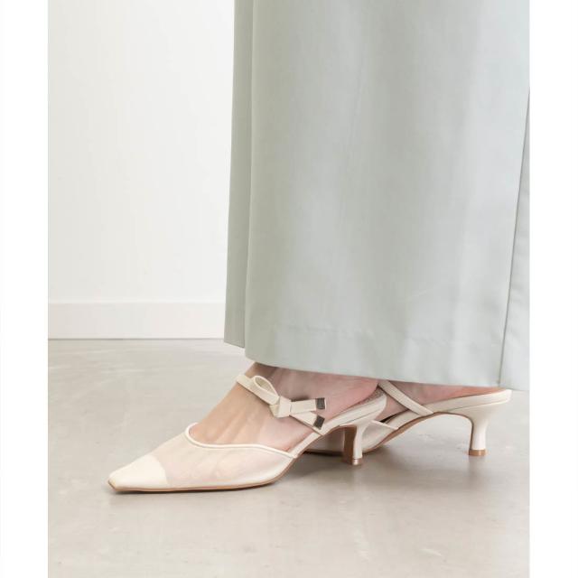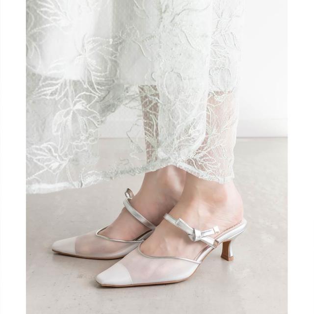 程よく素肌が透けるシアー素材とさっと履けるミュールタイプで足元に抜け感を与えてくれる一足です。