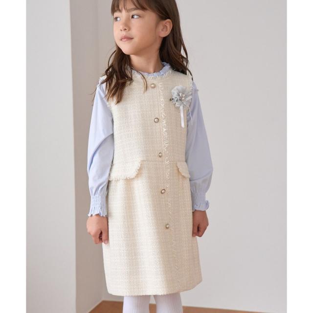 【KIDS/キッズ】パールボタンツイードジャンパースカート/セレモニー対応・リンクコーデ