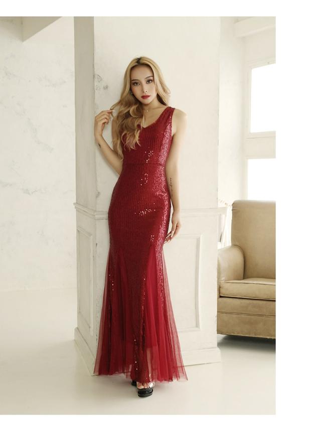 一部予約販売 ロングドレス Ryuyu スパンコール キラキラ マーメイドライン イベント 生誕祭 キャバ ドレス キャバドレ