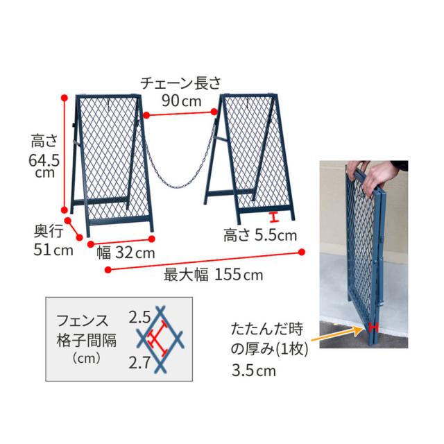 スタンド式チェーンゲート ガレージ 折り畳み