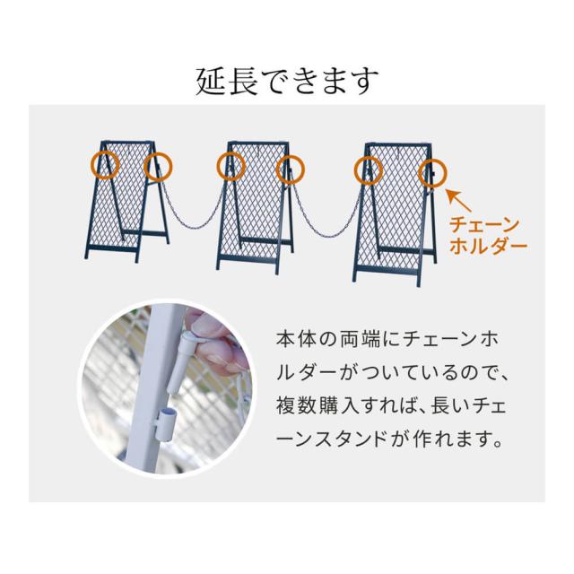 本体の両端にチェーンホルダーがついているので、複数購入すれば、長いチェーンスタンドを作れます。