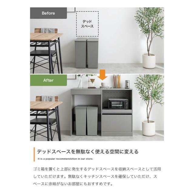 ゴミ箱上のデッドスペースを有効活用し、キッチンをスマートに整えます。