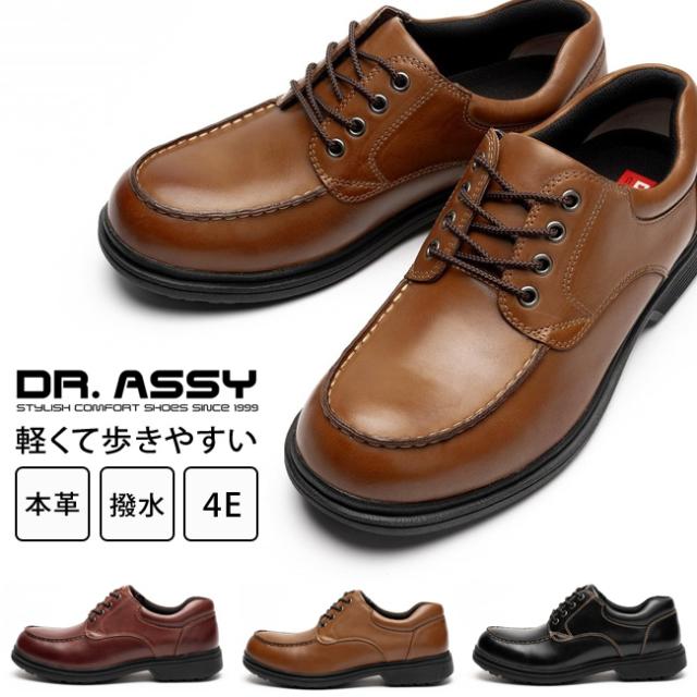 ドクターアッシー カジュアルシューズ メンズ 本革 撥水 4E 幅広 歩きやすい 甲高 軽量 防滑 おしゃれ 革靴 DR8020 雨 通勤 シューズ 靴