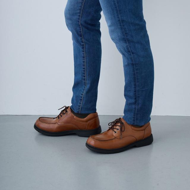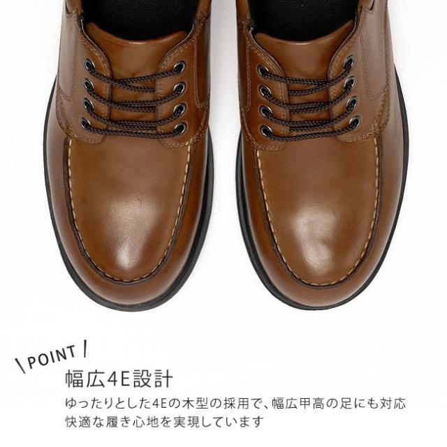 ジーンズやチノパンとも相性抜群なデザインで、どんなスタイルにもスムーズに溶け込みます。ゆったりとした4Eの木型の採用で、幅広甲高の足にも対応、快適な履き心地を実現