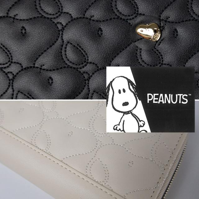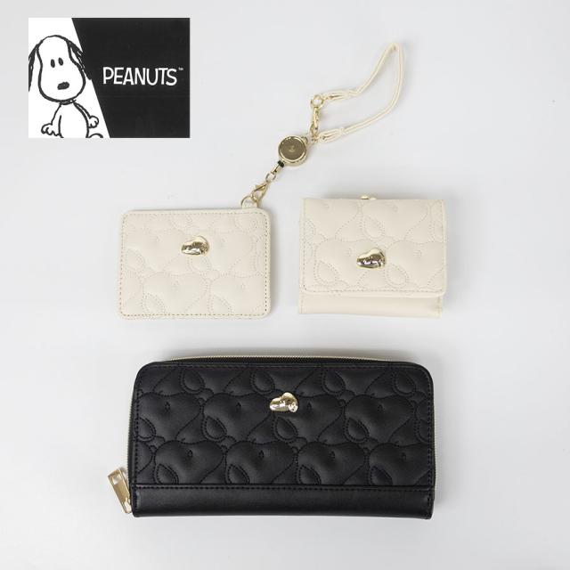 ■合皮にスヌーピーのキルティングを施した子供から大人まで使えるモノトーンシリーズ。立体的なスヌーピープレートも愛らしく大人っぽく、さりげなく、お持ちいただけます。パスケースとコーディネイトしてお持ちいただくことができます。