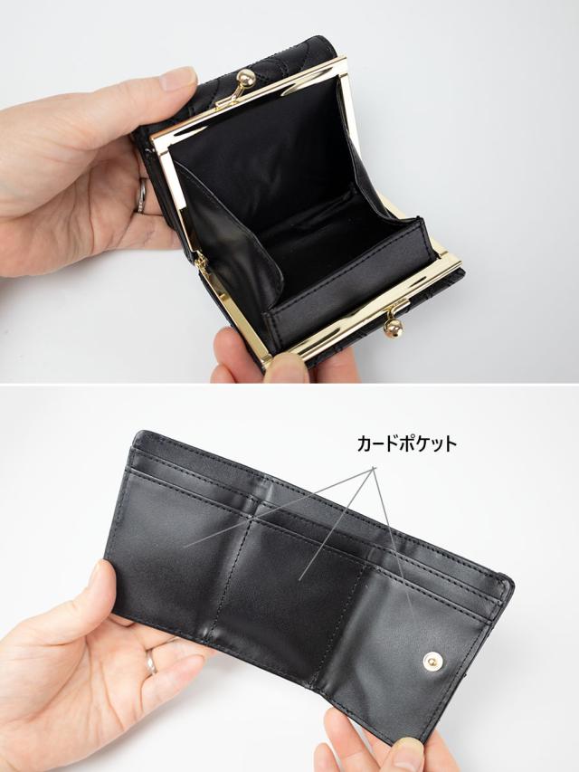 ■口金の小銭入れはボックス型になっていて中が見やすくなっています。3つ折りスタイルでコンパクト。大きすぎずバッグに収まりやすいので中高生の通学用にもお勧めです。