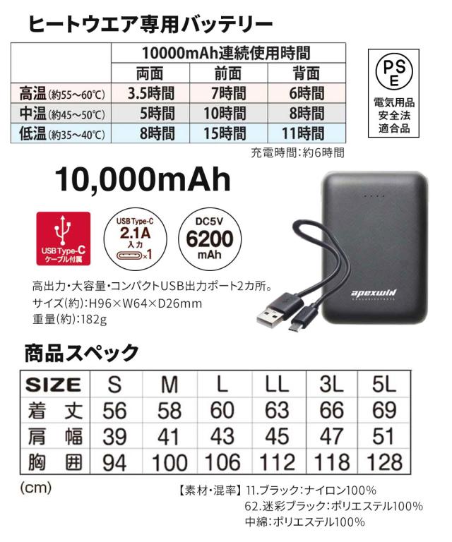 アタックベース 電熱ベスト バッテリー付き 電熱ジャケット ヒーター 電熱ベスト ヒーターベスト 加熱ベスト 電熱ウェア 秋冬 ヒートベスト 防寒着 usb加熱 バッテリーセット ヒーター付きベスト 充実機能 簡単操作 カーボン ナノチューブ ブラック 黒 迷彩 60000