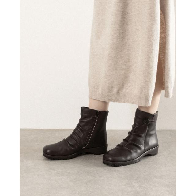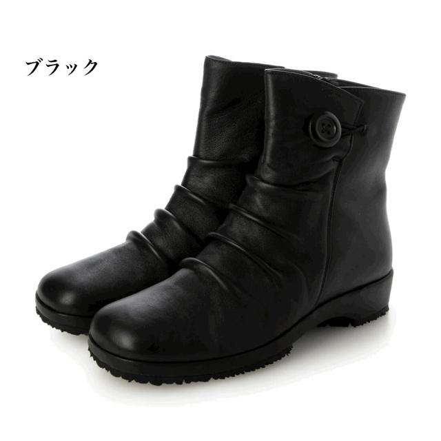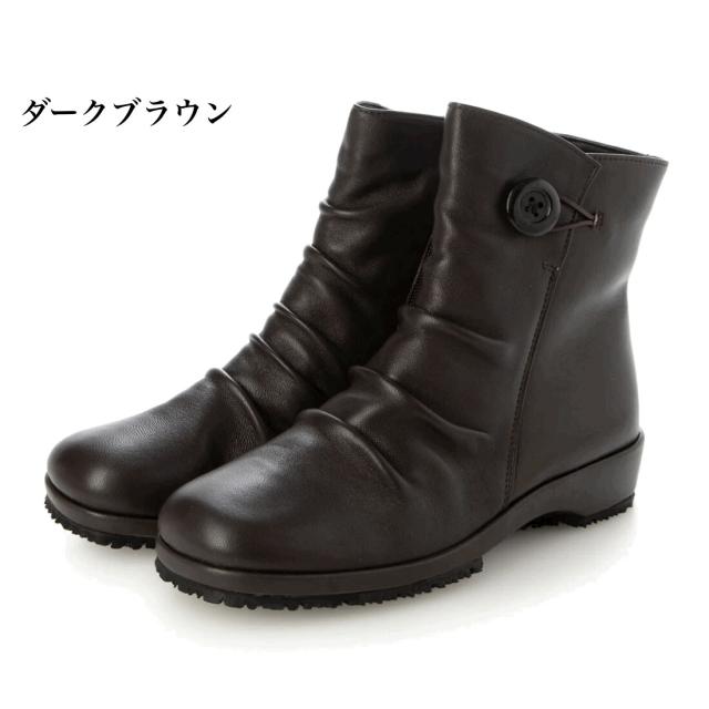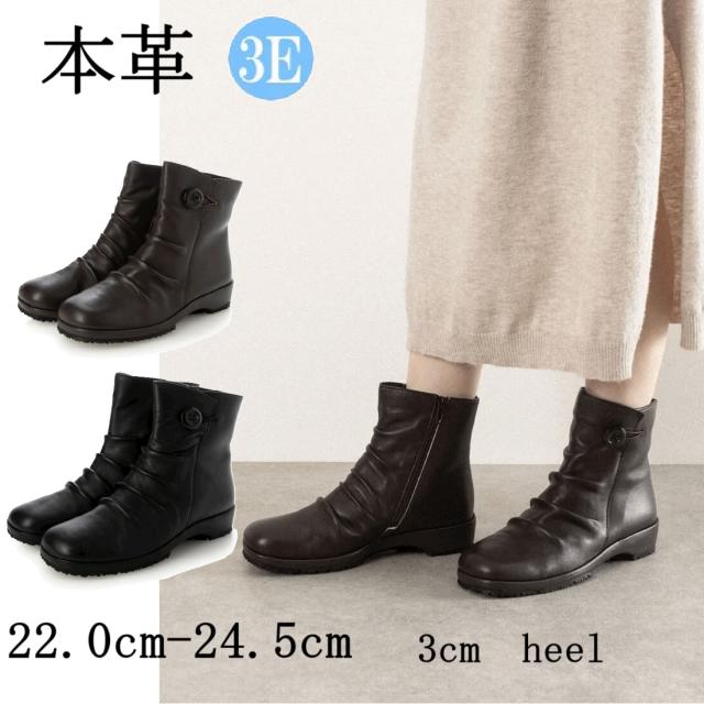 本革 牛革 レザーブーツ ブーツ ショートブーツ 柔らかい コンフォートブーツ カジュアル 幅広 3e 外反母趾 カジュアル 履きやすい 歩きやすい フラット 楽ちん ブラック ダークブラウン
