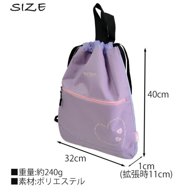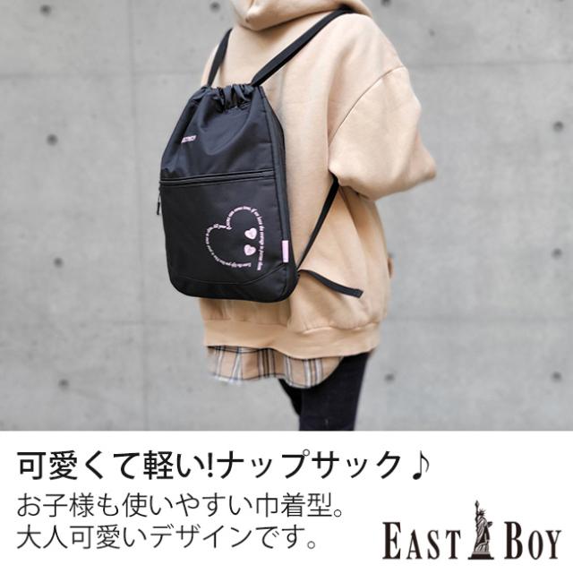 EASTBOY イーストボーイ リュック リュックサック ナップサック コンパクト 人気 かわいい ハート 女の子用 手提げ キッズバッグ ジュニア 体操服入れ おしゃれ こども用 サブバッグ 軽量 キッズ用 学校用 スクール 学童 部活 お泊り 宿泊