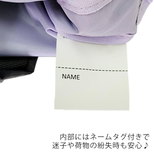 迷子や荷物の紛失に便利なネームラベル付き。
