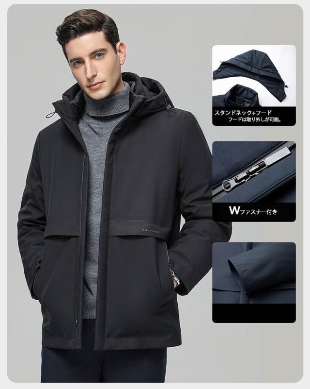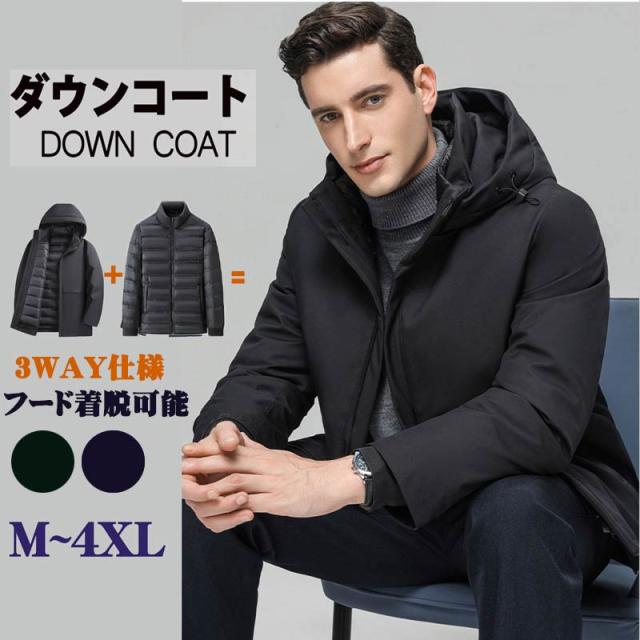 ダウンコート メンズ 3WAY ダウンジャケット フード付き 脱着式ライナー ビジネスコート 軽量ロングダウンコート メンズ ビジネス 大きいサイズ 父の日 お父さん 防寒 防風 高品質 暖かい 通勤 ブラック ネイビーeg290c0c0m5