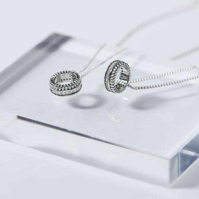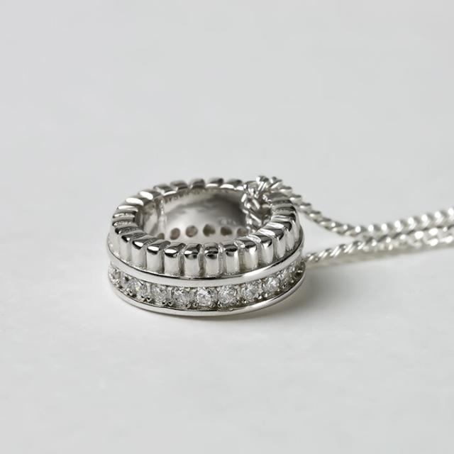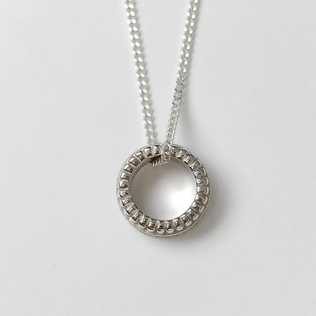 ジルコニアの輝きが美しい、小ぶりサイズのリングペンダントです。リングの片面にはミル打ち(ミルグレイン)風のデザインを施すことで輝きと立体感・上品さをプラスしています。ミル打ちとは小さな丸い粒を打ちつけるヨーロッパに古くからある技法。アンティークジュエリーに多く見られる他、婚約指輪や結婚指輪にも多く見られます。胸元を華やかに演出してくれる、大切な方と一緒に着けたいペアペンダントです。