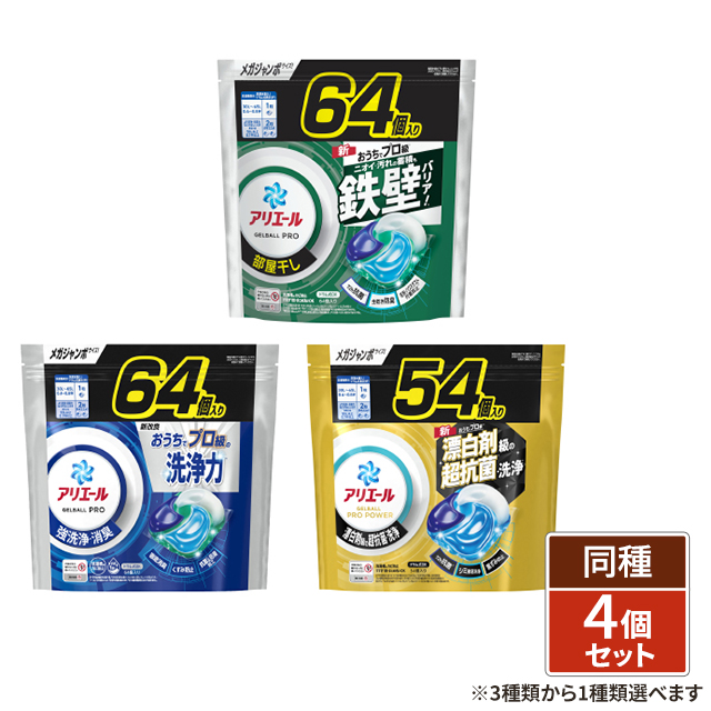 [3種類から1種類選択] アリエール ジェルボールプロ 洗濯洗剤 詰め替え メガジャンボ 4個セット 大容量 詰替え 洗剤 P&G
