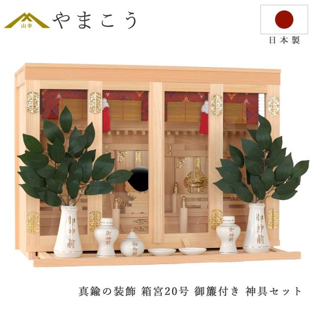 神棚 セット 真鍮金具 箱宮 三社 20号 東濃桧 神棚セット 神具セット 御簾 桔梗柄 日本製 国産 ひのき (代引き決済不可商品)神棚 神具 仏具 やまこう 山幸