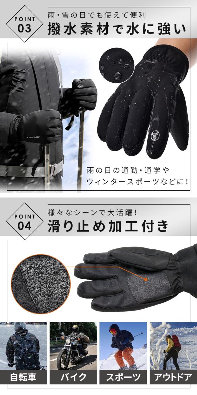 手袋 防寒 撥水 3Mシンサレート スマホ 高機能中綿素材 裏起毛 スノーグローブ 雪かき スマートフォン タブレット 5本指 全指 タッチパネル 対応 メンズ 男性 フィット 冬 通勤 通学 滑り止め メンズ あったか 自転車 バイク 登山 アウトドア キャンプ mitas TN-GV3M