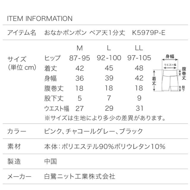 おなかポンポン 裏起毛 1分丈 腹巻きパンツ レディース 秋冬 肌着 婦人 女性 お腹生地二重 腹巻付きパンツ ボトムス あったか オーバーパンツ 温活 M/L/LL K5979P-E