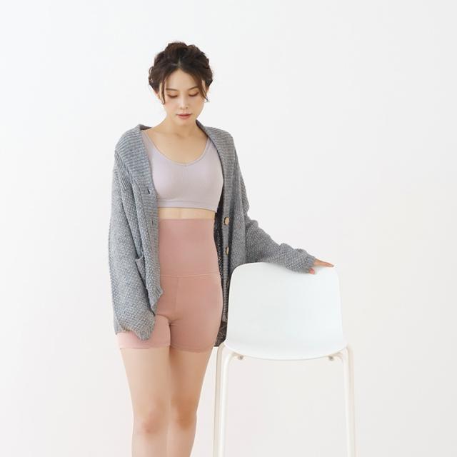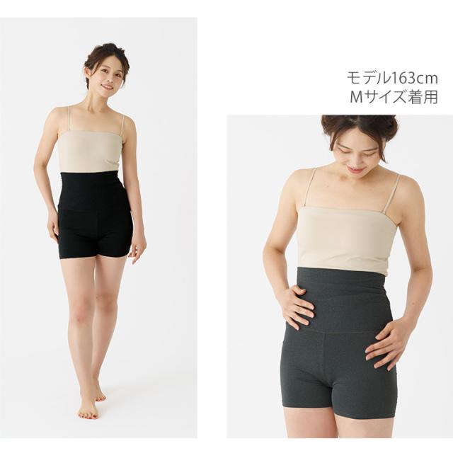 おなかポンポン お腹生地二重 ベア天竺 1分丈 パンツ ボトムス 腹巻付き