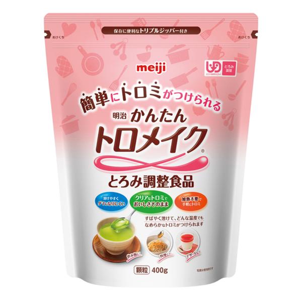 「明治 かんたんトロメイク」は、今日も明日も変わらないトロミを・・・。ダマになりにくく、誰でも簡単にとろみ付けできるとろみ剤です。