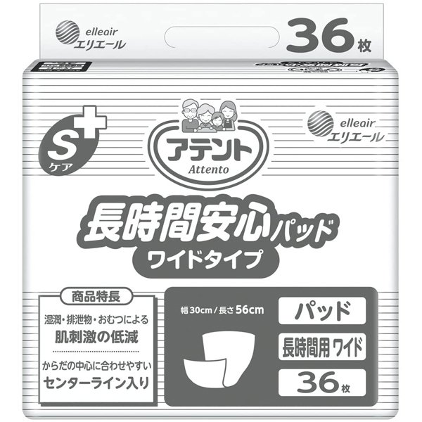 (ケース販売)アテント Sケア 長時間安心パッド ワイドタイプ36枚入×4袋(約4回分吸収)(大王製紙)