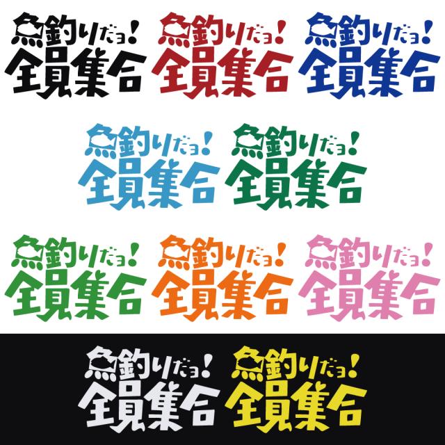 ステッカー 【 魚釣りだョ! 全員集合 】 選べる10色 縦13cm×横20cm オリジナルステッカー 遊び心満点のアングラー 釣り人 アウトドア派に 8時だよ!全員集合のノリで!