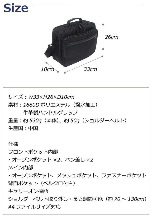 ![]() ![]() ![]() ![]() ![]() ![]() ・HOLDSWORTH ホールドワース ビジネスバッグとしても使えるサイズ。A4ファイルサイズ。 本体素材は、はっ水加工ポリエステルを使用しているのでお手入れが簡単です。 旅行や普段使いにおすすめです。