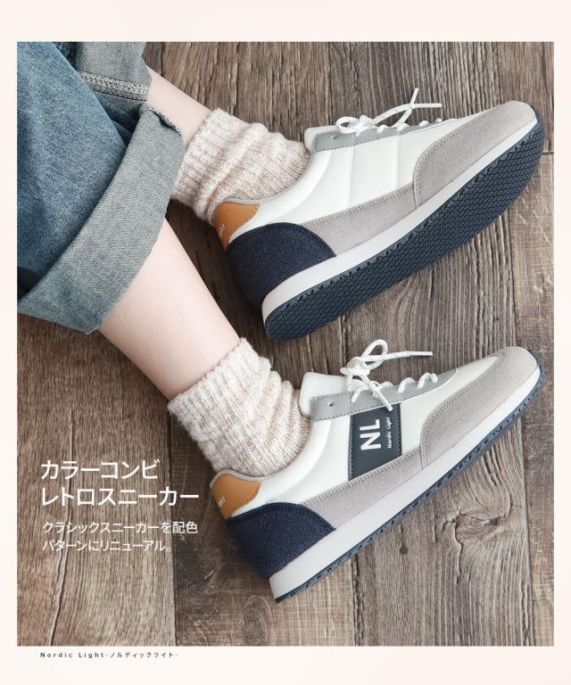 スニーカー レディース ローカット シンプル クラシック ワンポイント レースアップ 紐靴 通学 疲れにくい 軽い レトロ 秋 冬 ホワイト グレー グリーン ベージュ ノルディックライト 北欧 ブランド Nordic Light NL0111