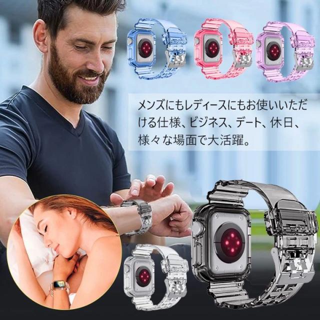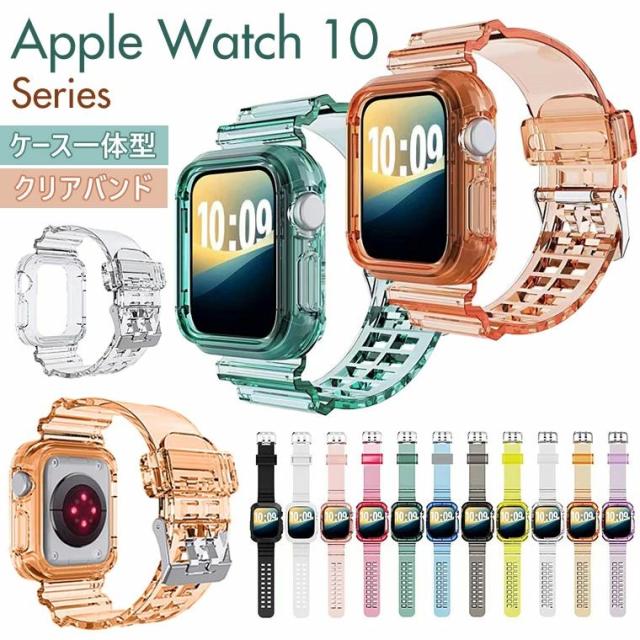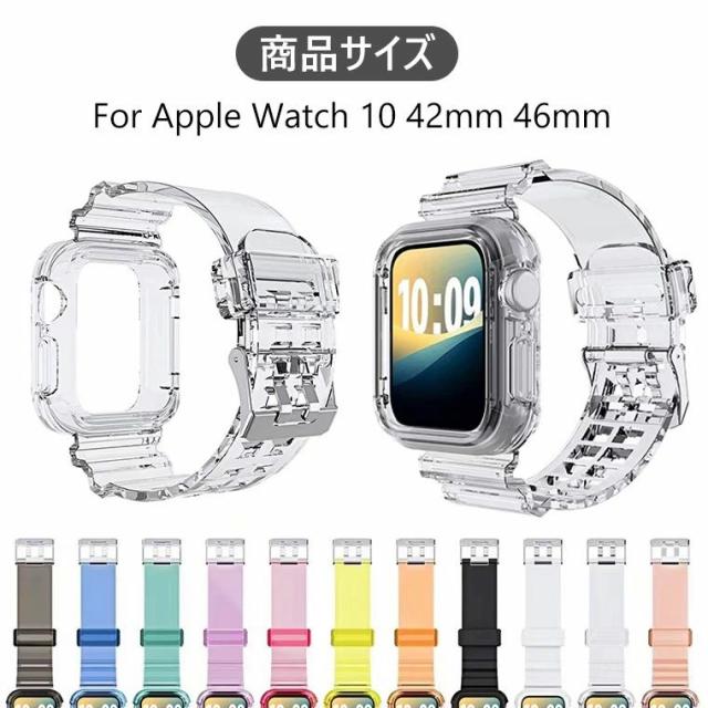 一部在庫 Apple Watch Series 10 バンド レディース Apple Watch10 替えバンド メンズ クリア 透明 Apple Watch S10 カバー Series10 42mm 46mm ベルト Series10 交換バンド おしゃれ アップルウォッチ 10 ソフト ケース一体型 耐衝撃 46mm用 交換ベルト 透明バンド