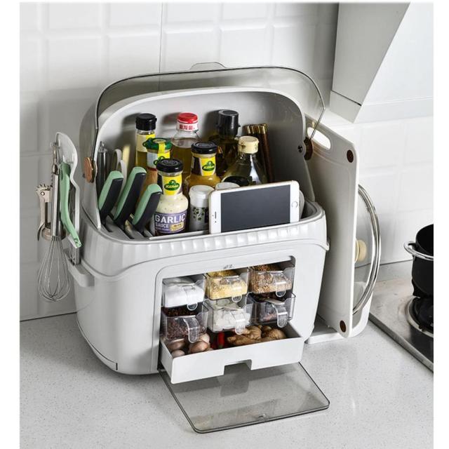 キッチン収納ボックス 多機能 台所ラック 包丁立て 箸立て スパイスラック 透明防塵蓋付き 防塵 防虫 キッチンツールスタンド 引き出し付き 大容量 キッチン用品