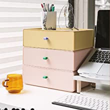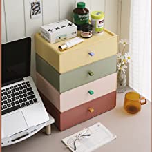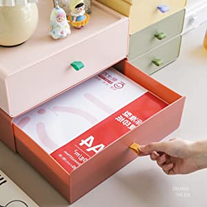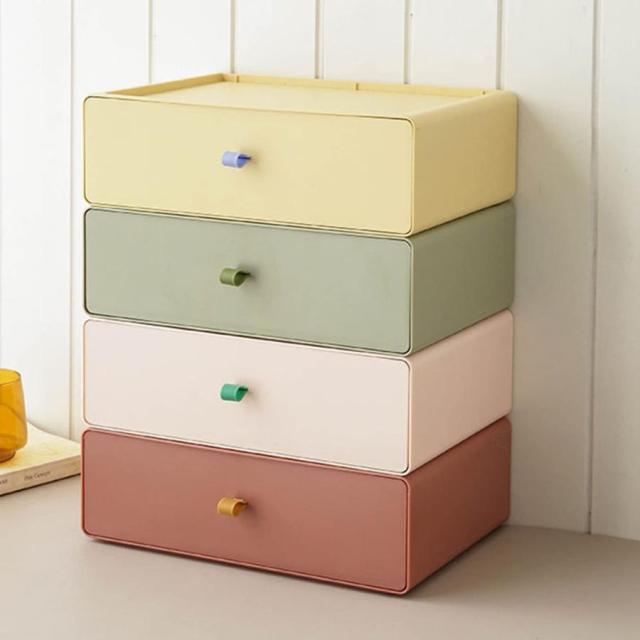 卓上収納ボックス 4色組合せ オフィス収納ボックス 引き出し式 積み重ね可能 デスク上置き棚 プラスチック 雑誌/新聞/書類入り A4対応 小物入れ 書類整理 省スペ
