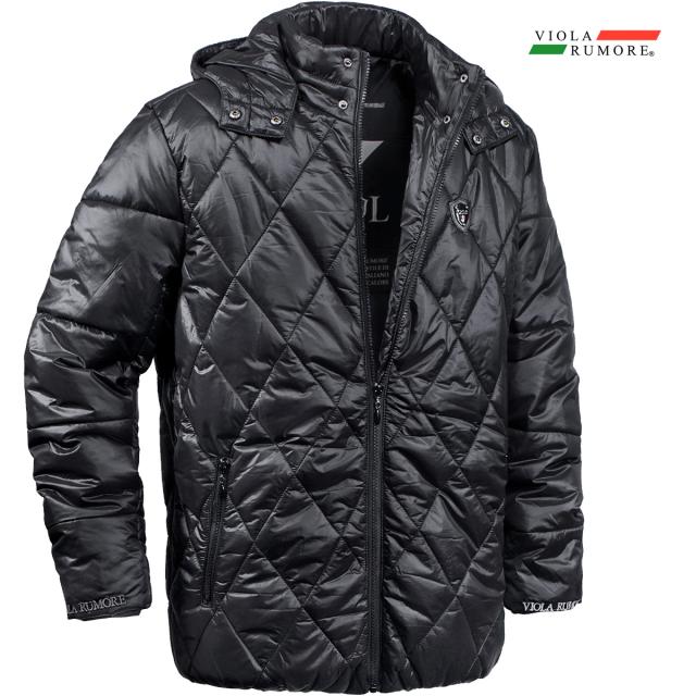 VIOLA rumore ヴィオラ ビオラ 中綿ジャケット フード付き ソフトナイロン PUレザーロゴ 刺繍 メンズ(ホワイト白) 52103