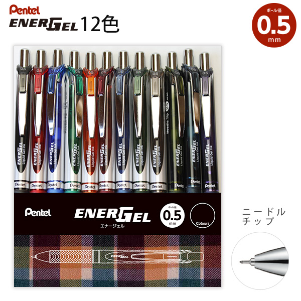 ぺんてる ENERGEL エナージェル 0.5mm 極細 12色セット BLN75EC-12 ニードルチップ ゲルインキボールペン 水性染料 鮮やかな発色 濃くはっきりした筆跡 なめらかな書き心地で驚異の速乾