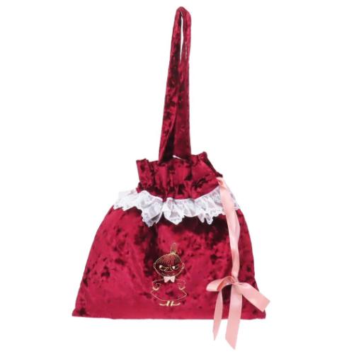 「ムーミン トートバッグ レース&ベロア巾着トート リボン ワインレッド 北欧 キャラクター グッズ」