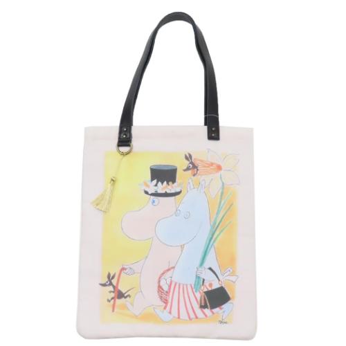 部分使いの牛革と厚手コットン生地にクラシックなムーミンのカラーイラストが大人可愛い