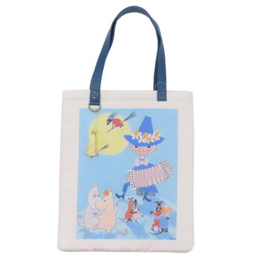 部分使いの牛革と厚手コットン生地にクラシックなムーミンのカラーイラストが大人可愛い